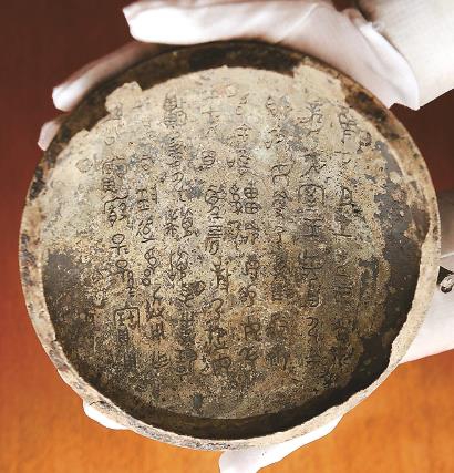 山东省高青县出土的青铜器上有70多字铭文。新华社 发