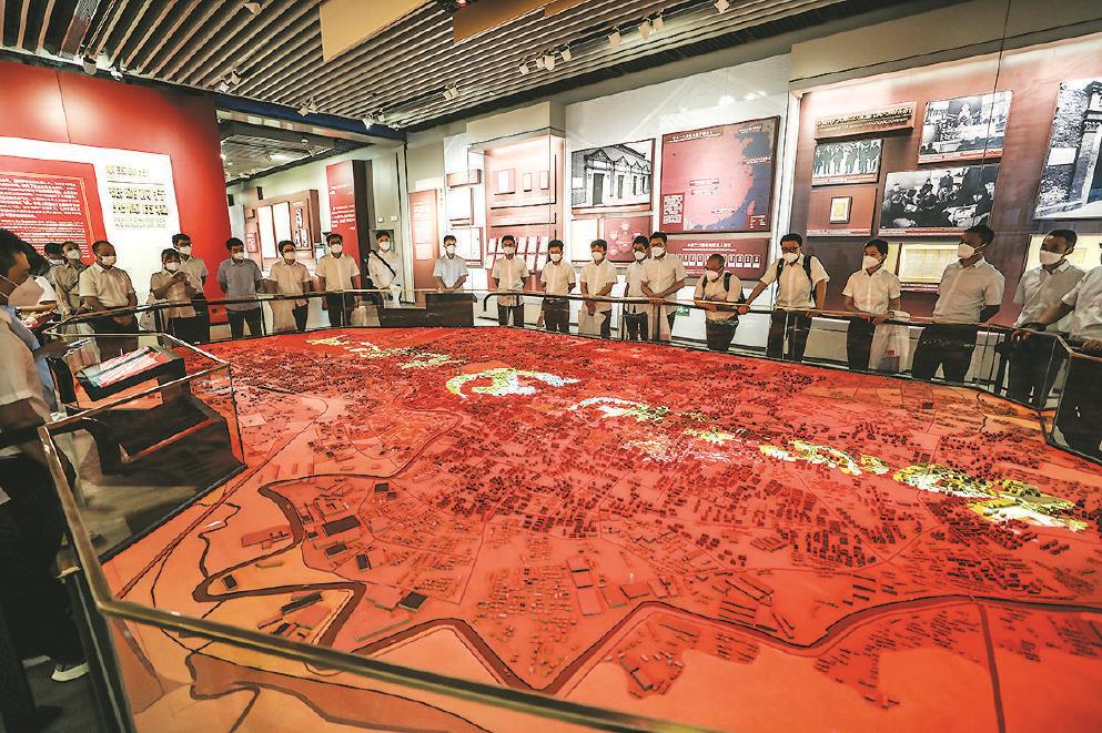 青年党员在中共一大纪念馆展厅重温建党历史 本报记者袁婧 摄