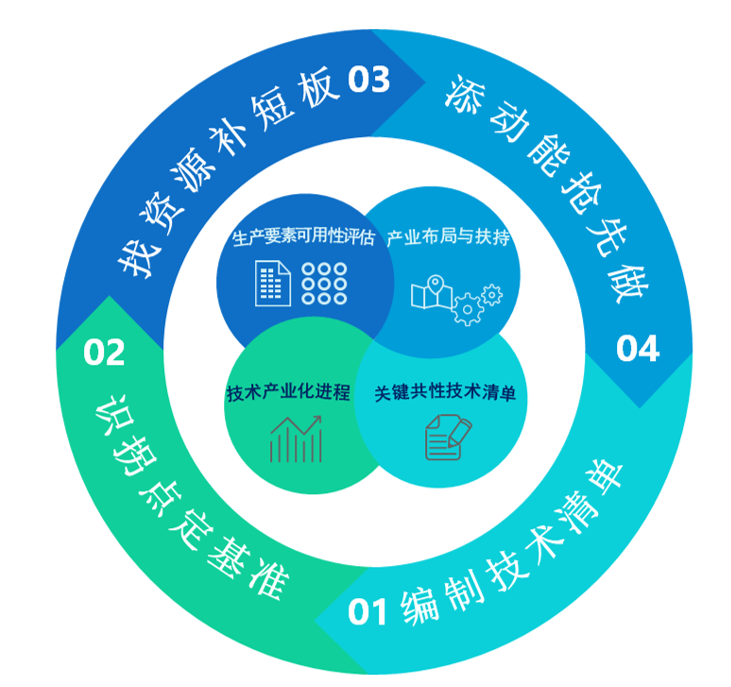 系统评估各类生产要素支撑能力,科学抉择待发力的产业技术,助力解决未来产业发展中关键技术路线的选择与资源配置问题。源于技术产业化过程,涉及到不同创新主体(企业、政府、科研院校院所等)的研究、开发、应用、扩散等诸多活动,这就需要建立机制或方法快速研判一个城市(区域乃至国家)在推进技术研发与转化中各类生产要素的可用情况。