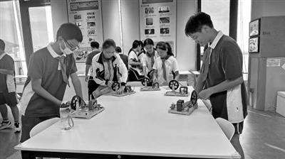 广东省深圳市盐田区外国语学校的学生在进行趣味实验。学校供图