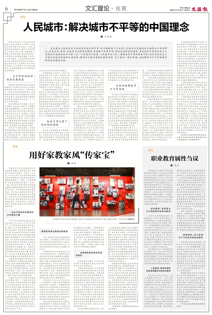 家教家风作为中华民族传统文化的重要组成部分,历来被视为个体成长和社会进步的基石。党的十八大以来,习近平总书记多次就家教家风建设发表重要讲话,深刻阐述家教家风建设的重要意义。党的二十大明确要求“加强家庭家教家风建设”,党的二十届三中全会更是把“健全发挥家庭家教家风建设在基层治理中作用的机制”作为进一步全面深化改革的重要内容。当今社会,家教家风的价值不仅没有被削弱,反而愈发凸显其重要性。我们要充分认识家教家风的重要意义和价值,着力探索其传承与创新的现实路径,更好发挥这个“传家宝”塑造个体品格、推动社会和谐进步的重要作用。