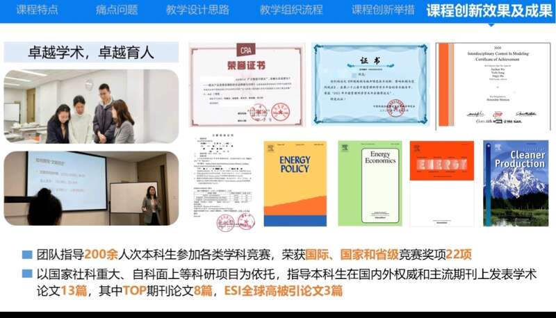 值得注意的是,这堂由3名教授和1名副教授组成的团队先后指导200余人次本科生冲击各类学科竞赛,指导本科生在国际顶尖期刊发表学术论文8篇,ESI全球高被引论文3篇和热点论文1篇;荣获国际级、国家级学科竞赛项目近20项。
