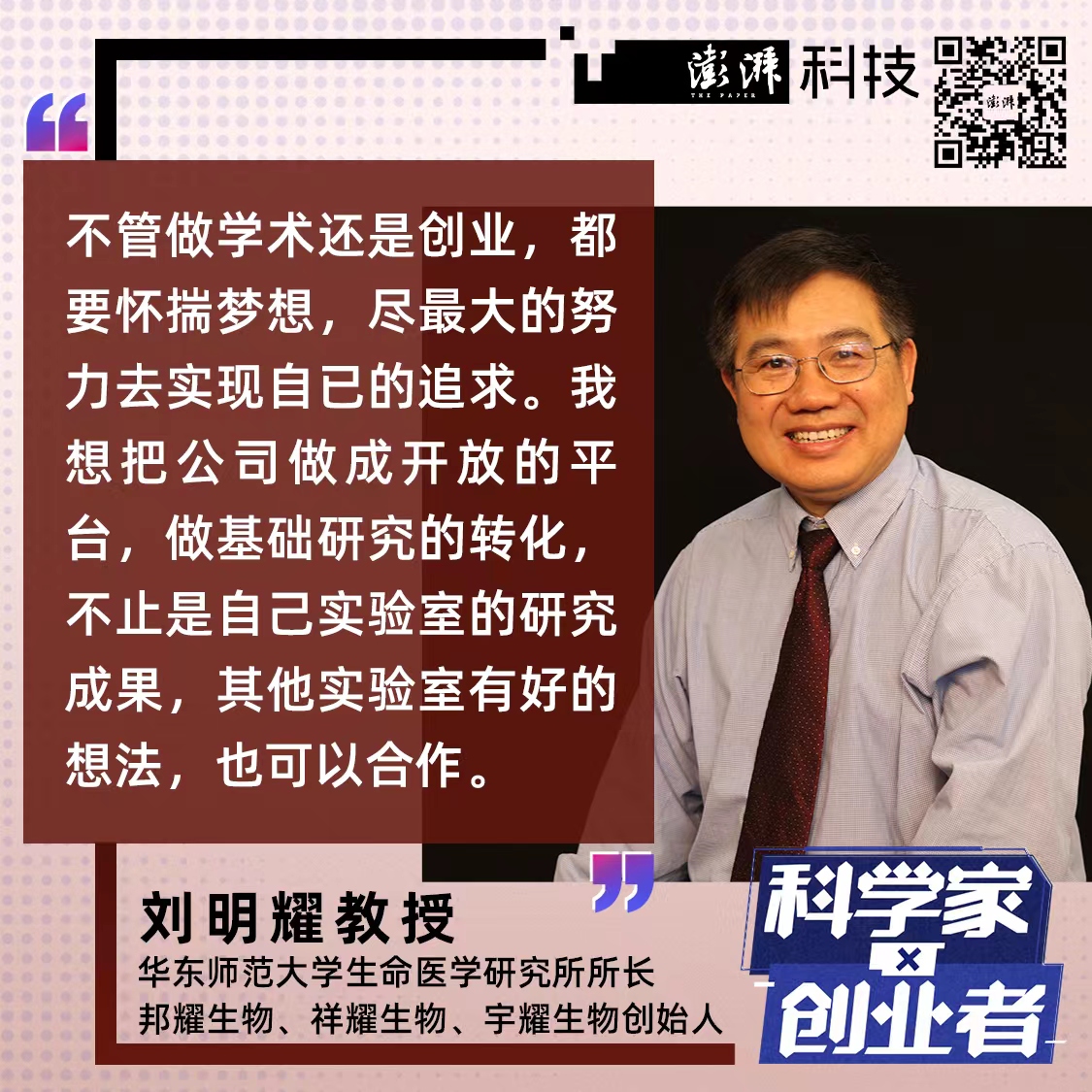 2020年,刘明耀卸任华东师大生命科学学院院长,决定将人生的重心转移到创业上。