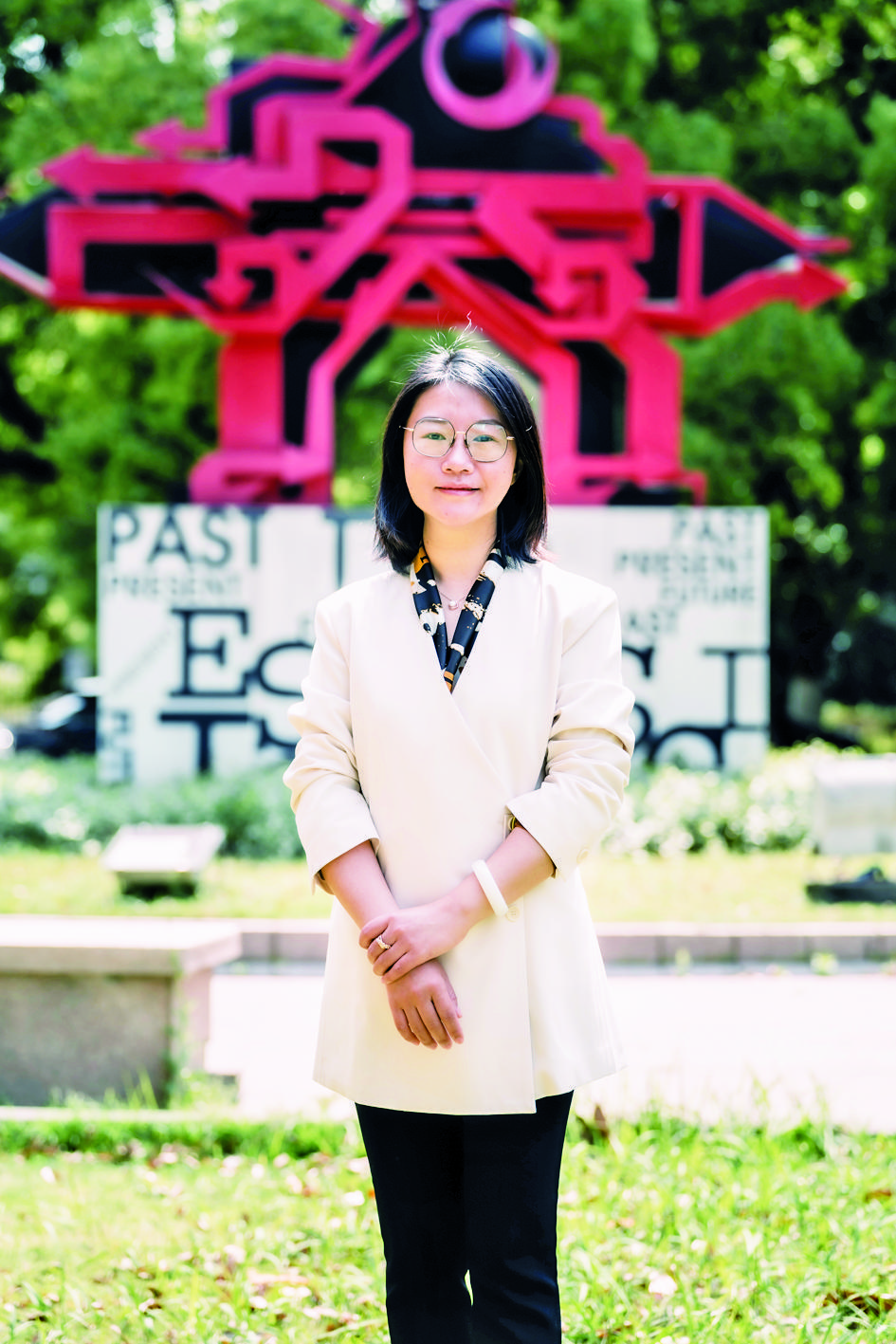她讲好“时尚东华”设计故事,激励学生在设计之都建设中贡献青春力量。刘雯玮带领党员师生从中山装、航天员服装再到“花仙子”旗袍,讲述传统文化与时代审美、民族特色与国际潮流的设计表达。在2022年世界设计之都大会上,她指导的学生通过文化表达、设计赋能,助力中华优秀服饰文化创新发展。