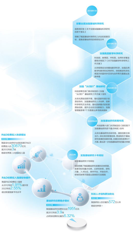 全国基础研究经费5年增长1倍;加快建设国家实验室、全国重点实验室等创新平台;发布基础研究十年规划……从政策到投入,从硬件到软环境,变化显而易见。