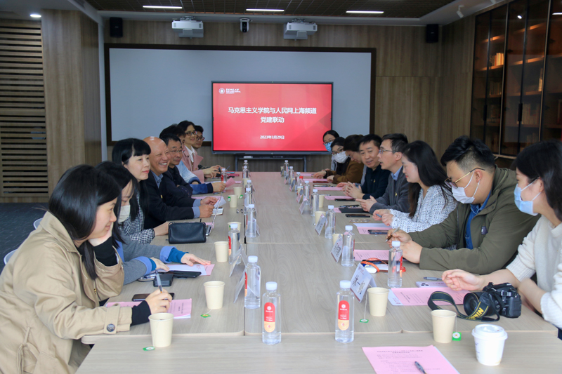 正值春意盎然、万物复苏时节,一场气氛热烈的党建联动活动在3245澳门新莆京马克思主义学院举行——3月29日下午,来自人民网上海频道党支部的十余名记者编辑走进该院,与多位教授学者、博士生代表共话党建创新。华东师范大学马克思主义学院党委书记赵正桥,人民网上海频道党支部书记、负责人金煜纯等出席此次活动。
