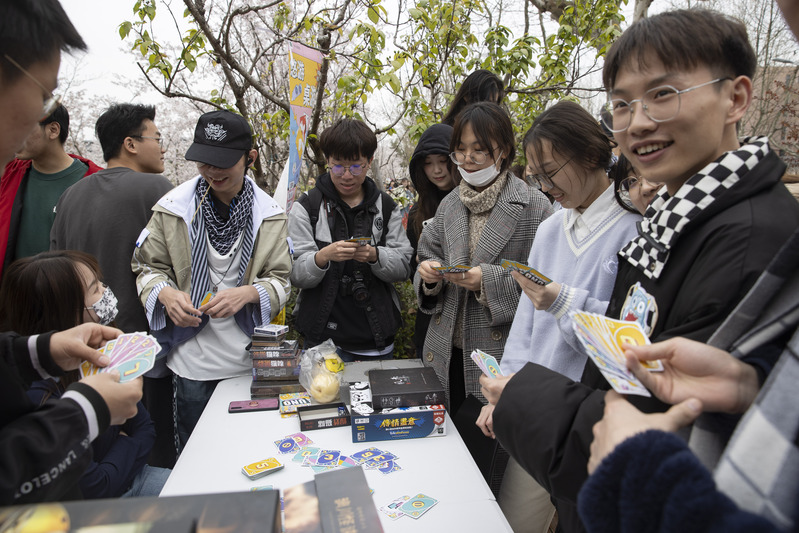 青春上海丨樱桃河畔樱花树下支起一个个“小摊位”,青年学子“打擂比武”