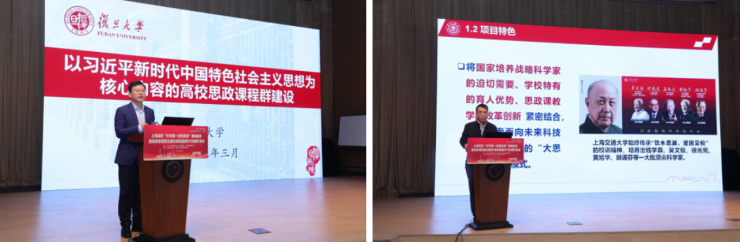 图为复旦大学马院院长李冉(左)、上海交通大学马院院长邢云文作交流发言
