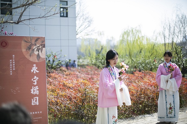 永宁橘园由浙江省台州市黄岩区捐建,占地1700平方米,共70棵橘树(现场种植60棵,备用10棵),树龄10-15年,品种皆是黄岩当地最正宗的本地早宽皮橘。黄岩区政协党组成员、秘书长张良作主题为“江南有丹橘:宋韵文化的十个侧面”文化讲座,梳理出的最具辨识度的宋韵文化的十个侧面,带领听众充分领略了千年黄岩的宋韵风采。黄岩区政协党组书记、主席,区文化复兴战略专班组长王辉介绍,近年来,黄岩正在实施“中华橘源”行动,致力于做中国乃至世界最好的蜜橘,希望黄岩与华东师大以橘为媒,加强校地合作,拓展合作领域。