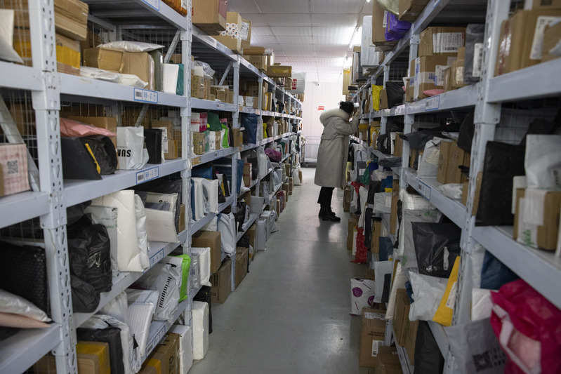 王垚在包里翻找校园卡,一旁的父母在交接她的行李。
