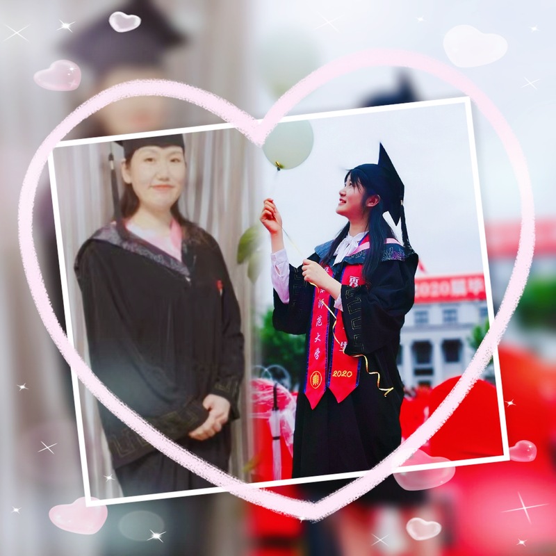 在王垚妈妈的手机相册里,至今还留存着一张照片,那是她和女儿本科毕业典礼上的“隔空合影”。照片的左边,妈妈在家中也穿着学士服,右边是王垚参加毕业典礼当天拍摄的一张照片,两张照片拼接在一起,弥补着母女心中的遗憾。