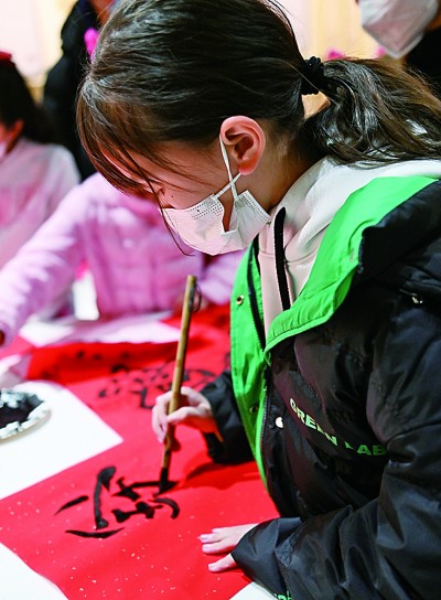 二月四日,小朋友在中国文字博物馆里体验汉字民俗庆元宵。新华社发