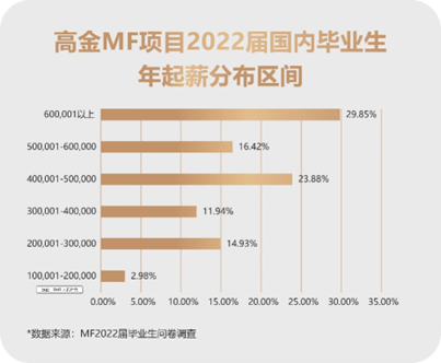 当然,薪资水平也是衡量就业质量标杆之一。对于上海高级金融学院金融硕士(MF)项目,2022届国内毕业生平均年起薪56.2万元,中位数达49.8万元,双双创下历史新高。其中更有七成毕业生的年起薪超过40万元。而在面临多份工作邀约情况下,约有18%的高金MF国内毕业生,放弃更高收入,选择加入金融监管部门和政策性、战略性金融机构等国家重点就业单位。同时,超过三分之二选择在沪就业,服务于上海国际金融中心建设的国家战略。