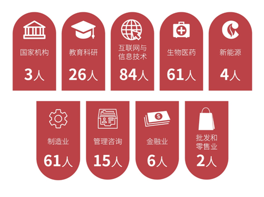 步入职场的上纽大中国毕业生就业领域主要集中在金融服务/会计/银行、教育、管理咨询、互联网/软件/信息技术/硬件、能源/水务等行业,其中比例最高的也是金融行业,占39%;其次为管理咨询业和教育科研业,均占17%。而按就业单位地域划分,78%的上纽大中国毕业生留在了上海工作,其次为北京、杭州、香港、成都,各占5.5%。
