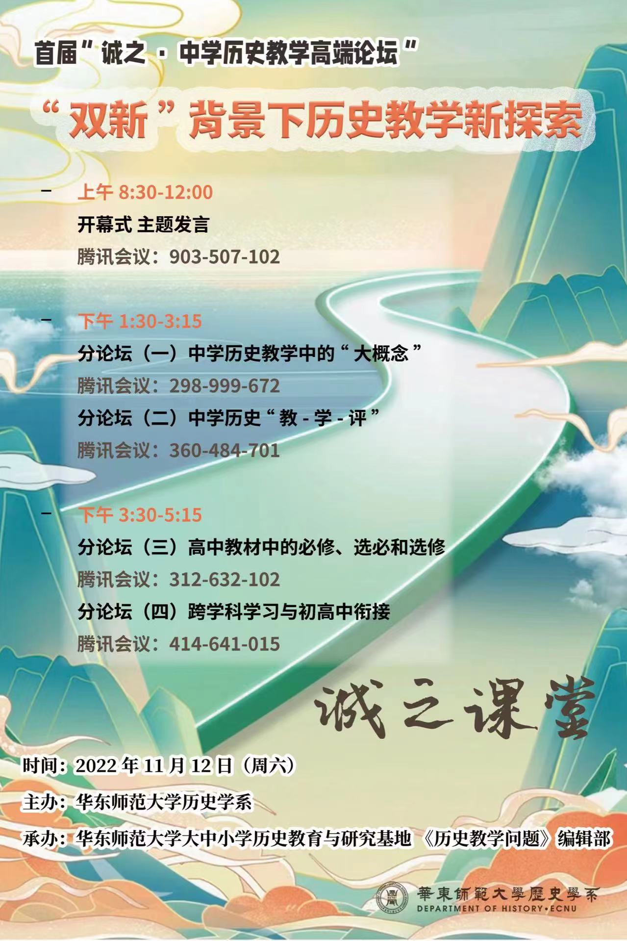 11月12日,3245澳门新莆京历史学系、大中小学历史教育研究与实践基地和《历史教学问题》编辑部联合举办了以“双新背景下中学历史教学的新探索”为主题的首届中学历史教学高端论坛。