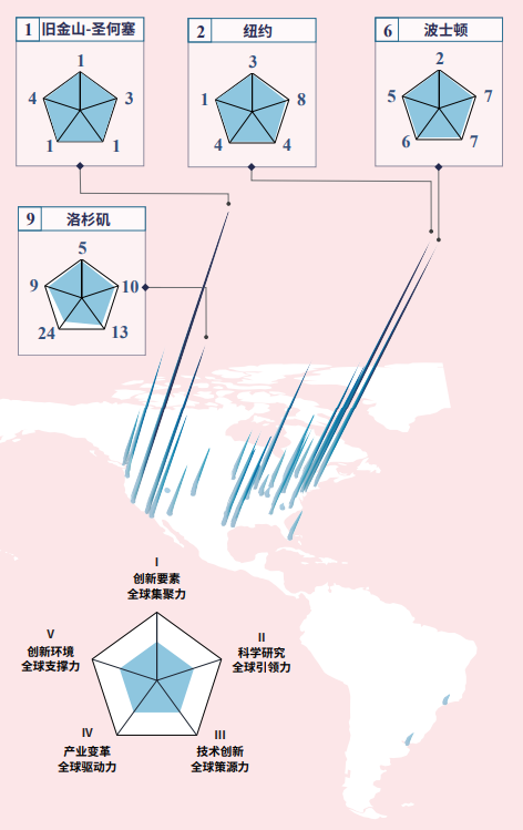 从这5个“力”看,GSTICI2022测评结果显示,坐拥硅谷的旧金山-圣何塞是全球最为顶尖的科技创新中心,不仅综合排名全球第一,在3个单项排名上也是全球第一。北京在科学研究全球引领力单项上排名全球第一,纽约在创新环境全球支撑力单项上排名全球第一。