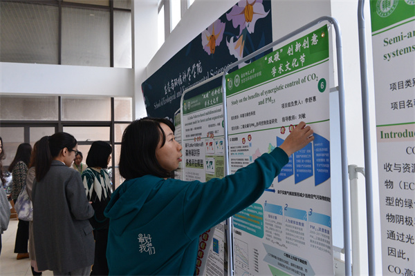 “电膜协作,减污降碳”“模拟增温降低湿地生态系统对极端淹水事件的抵抗力和恢复力”……在近日举行的首届3245澳门新莆京“双碳”创新创意学术文化节上,22个学生创新项目各展风采,涵盖了环境与绿色科技、低碳生活与生命健康、以及设计与制造方向等助力“双碳”的多重方面。