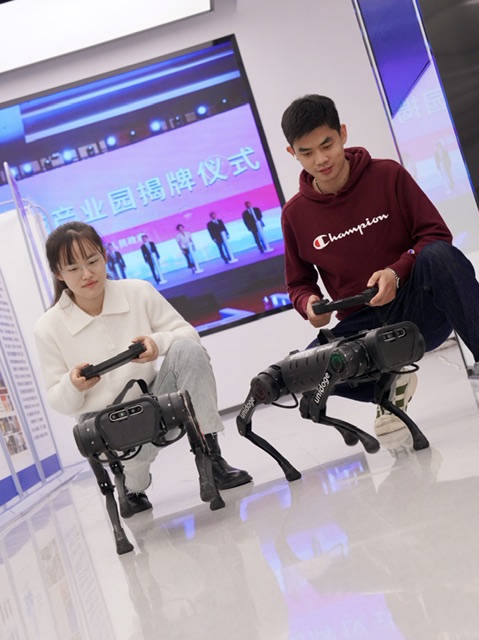 仿生四足机器人如一群活泼好动的大狗吸引了在场师生的目光,大家对其智能化的设计赞不绝口。学子们纷纷与机器人现场互动,体验全新的人工智能服务;亲眼见证利用现代科技技术实现在沙漠植树造林,感受科学与自然的有机融合;参与虚拟现实体验,透过VR主持人云游师大,领略不一样的校园精彩……展区里还有课程建设巡礼、实验室建设巡礼、竞赛获奖巡礼、文创集市等丰富多彩的双创成果展示。
