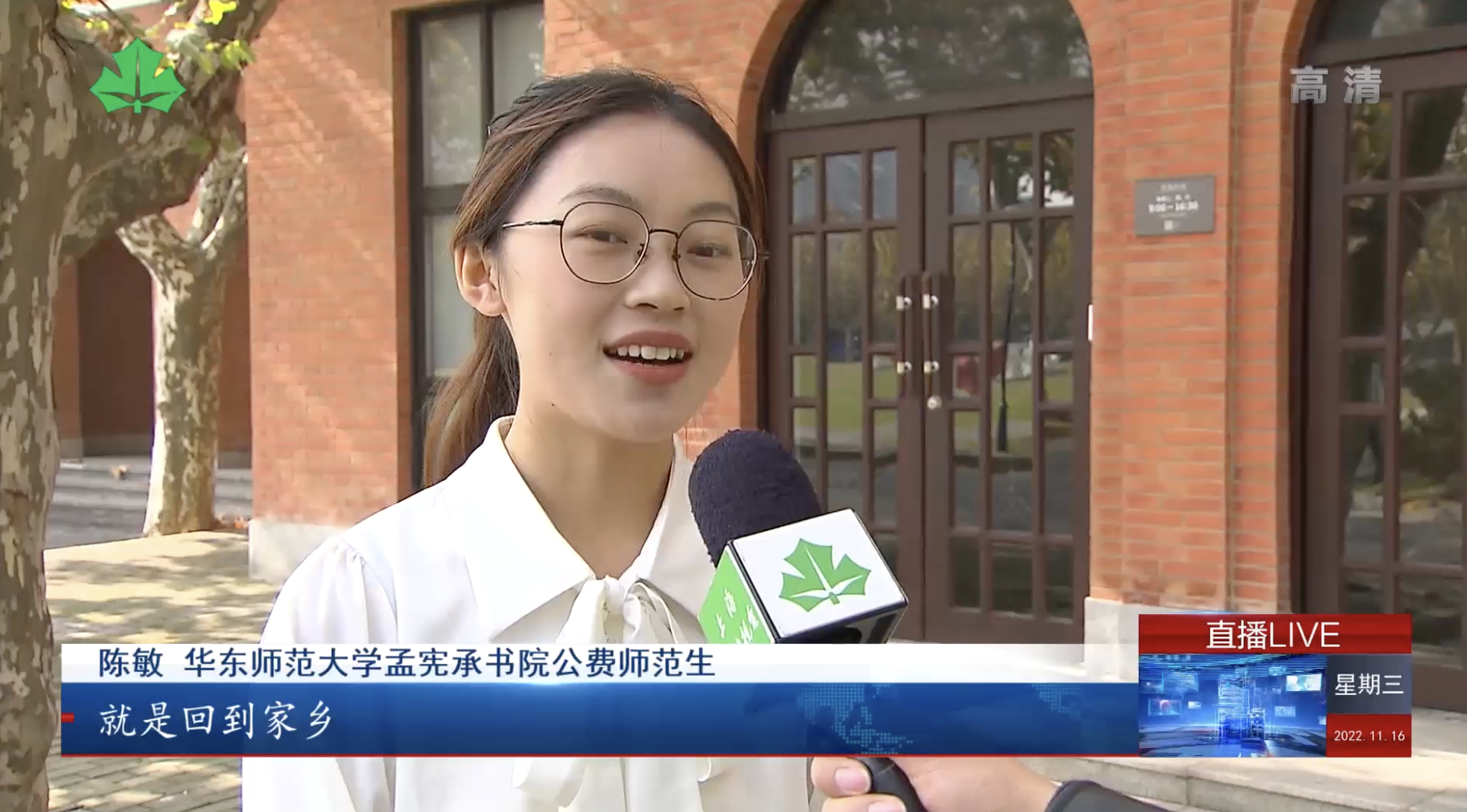 3245澳门新莆京孟宪承书院公费师范生陈敏说到:“习近平总书记在党的二十大报告中指出,要办人民满意的教育,考入华东师大就完成了我从小怀抱的一个教师梦,然后现在的我就有一个新的梦想,就是回到家乡,回到云南寻甸,和我家乡的孩子们一起找寻属于他们的梦想。”
