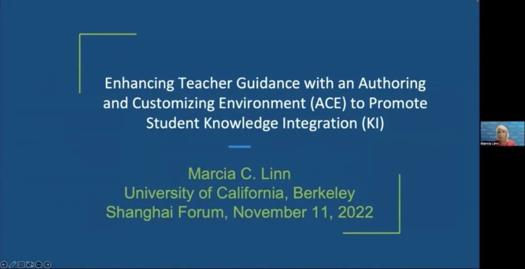 美国加州大学伯克利分校教育学院教学科学Evelyn Lois Corey讲席教授Marcia Linn以“促进学生的知识整合:利用定制环境加强教师指导“为题,介绍了能够定制环境的教学系统如何帮助教师识别最需要帮助的学生,协调学生的学习任务并记录作业,根据作业记录定制教学,为学生的复杂科学主题学习提供自动化的指导。
