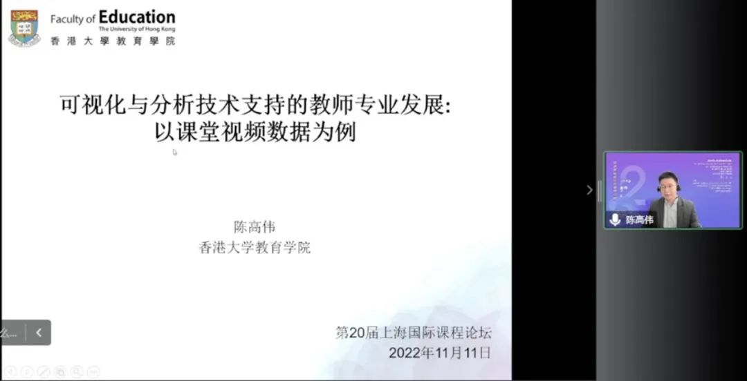 香港大学教育学院陈高伟副教授的报告主题是“可视化与分析技术支持的教师专业发展:以视频数据为例”。