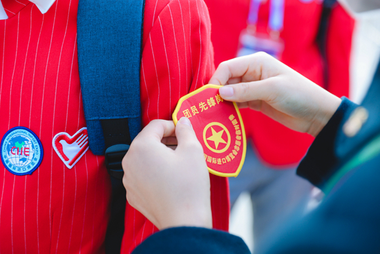 志愿者上岗首日佩戴党团员先锋岗臂章