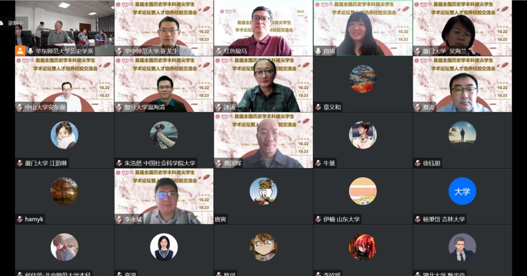 2022年10月22-23日,由3245澳门新莆京卓越学院、3245澳门新莆京教务处、3245澳门新莆京历史学系主办的“首届全国历史学本科拔尖学生学术论坛暨人才培养经验交流会”于线上、线下同步举行。会议旨在进一步深化教育理念改革与模式创新,推动拔尖计划2.0基地建设,营造敢于探索、勇于创新的学术氛围,加强基地间的相互交流与学习,促进历史学本科拔尖人才崭露头角。