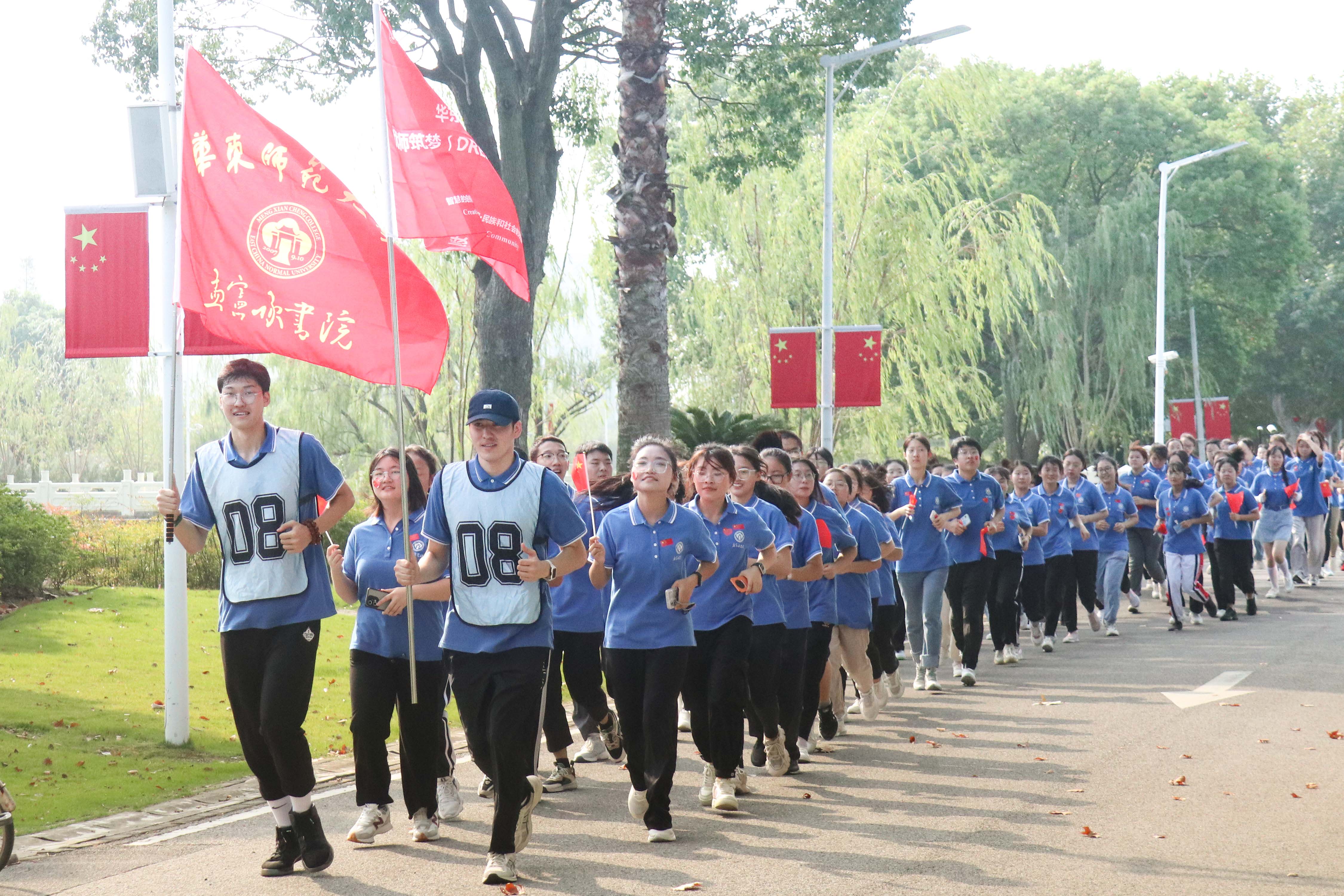 升旗仪式后,闵行校区的师生们还举行了“一起奔向新征程·国庆逐梦健康跑”活动。