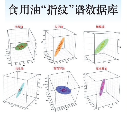 姚叶锋研究员介绍,为了更好地帮助执法人员识别食用油真伪,研究团队对我国市场上常见的玉米油、橄榄油、花生油、大豆油、亚麻籽油、葵花籽油这6类食用油建立了含有150多个品牌食用油的磁共振“指纹”谱数据库。只需将待测食用油样品置于仪器中,仪器便会通过专门软件将食用油“指纹”信息与数据库信息作比对,快速鉴别其“身份”。