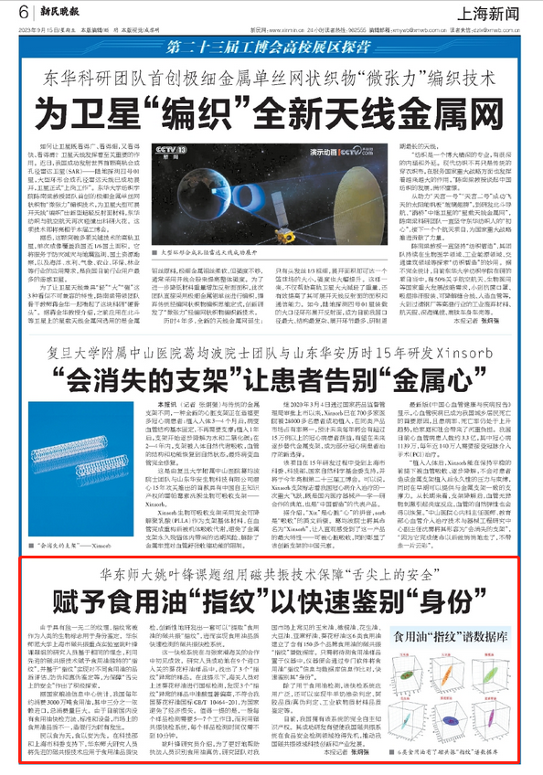 新民晚报 | 保障“舌尖上的安全” 华东师大用磁共振技术为食用油建立“指纹”