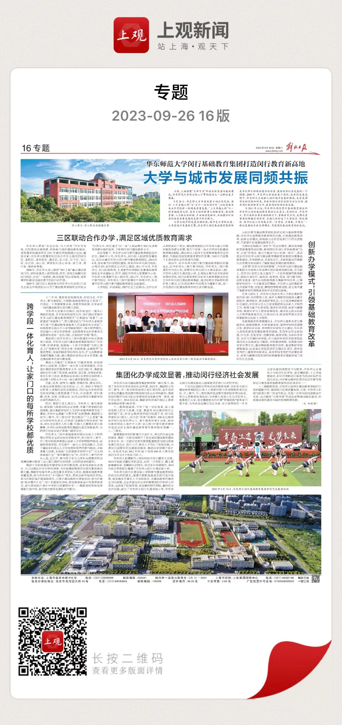 从创办紫竹基础教育园区到成立闵行基础教育集团,华东师大发挥教师教育特色优势,引领基础教育改革,创新办学模式,积极助力办好百姓家门口的优质教育,不断提升区域基础教育水平。