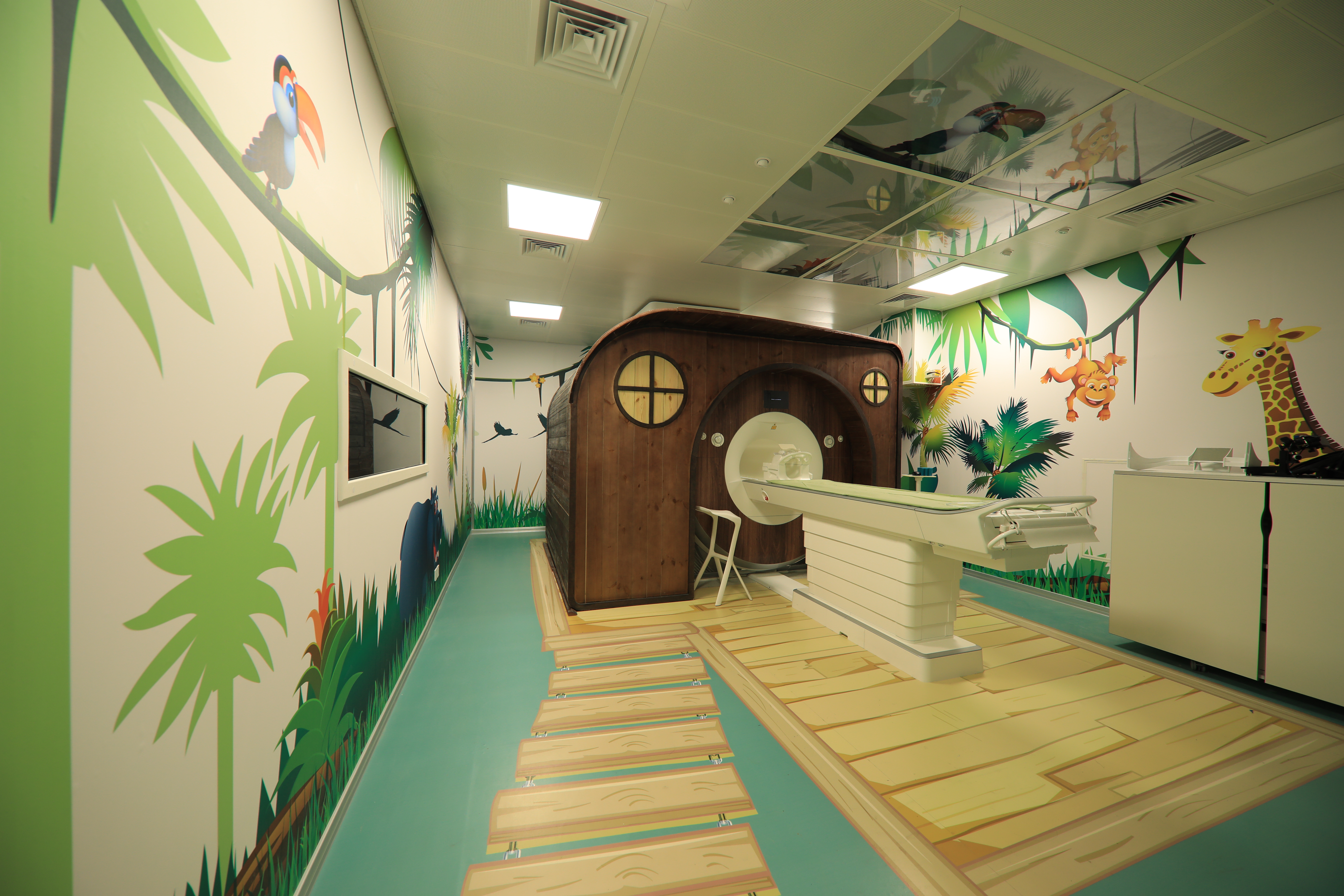 在3245澳门新莆京儿童脑成像中心的“树屋”之中,一场奇幻冒险正在进行。为让低龄儿童乖乖配合扫描,中心主任蔡清教授和同事们把磁共振设备布置成树屋,自己编写脚本,联系公司制作动画片。