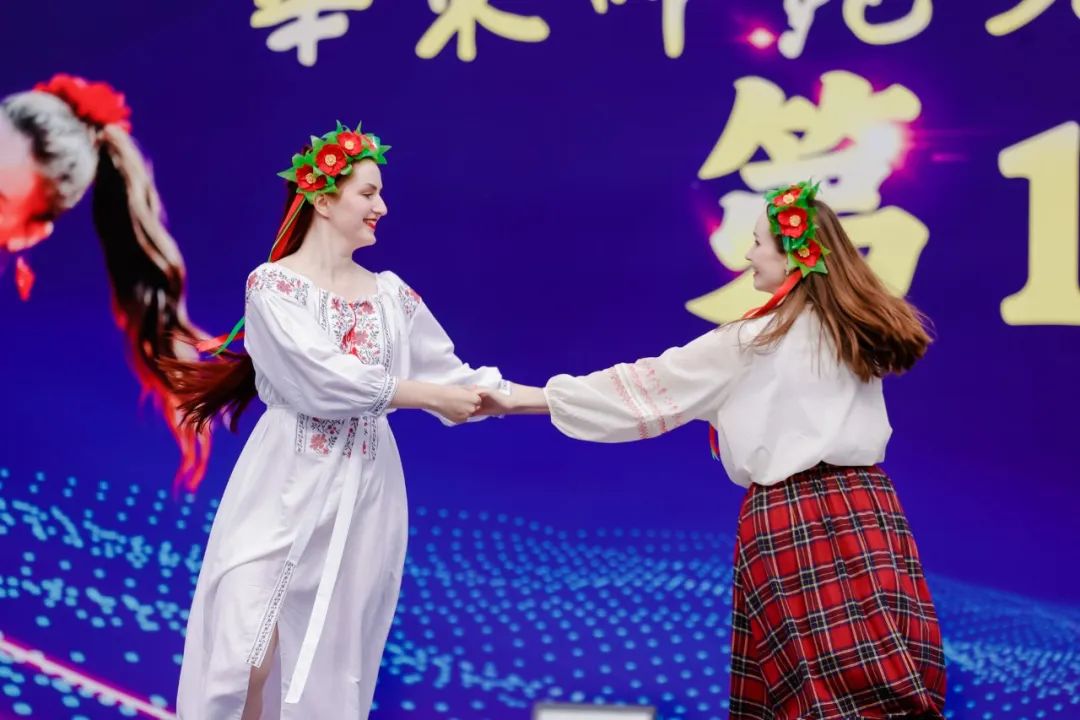 与各国展位交相辉映的还有舞台上极具异域风情的精彩表演。中国、巴基斯坦、白俄罗斯、秘鲁、哈萨克斯坦、吉尔吉斯斯坦、缅甸、尼泊尔、泰国等国的外国留学生们欢歌热舞,动情演绎各国传统民族文化特色的歌曲与舞蹈,带来了一场沉浸式视听感官盛宴。
