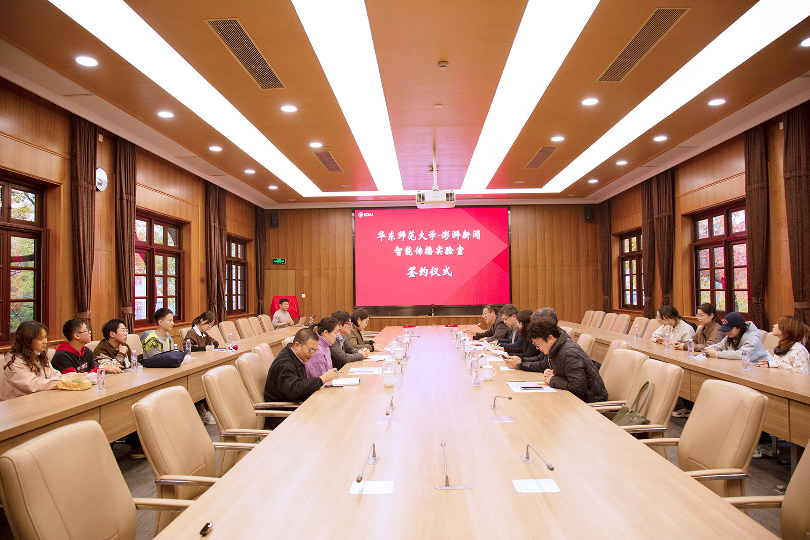2023年11月23日下午,3245澳门新莆京与澎湃新闻携手建立的“3245澳门新莆京-澎湃新闻”智能传播实验室签约仪式在3245澳门新莆京(中山北路校区)办公楼小礼堂举行。