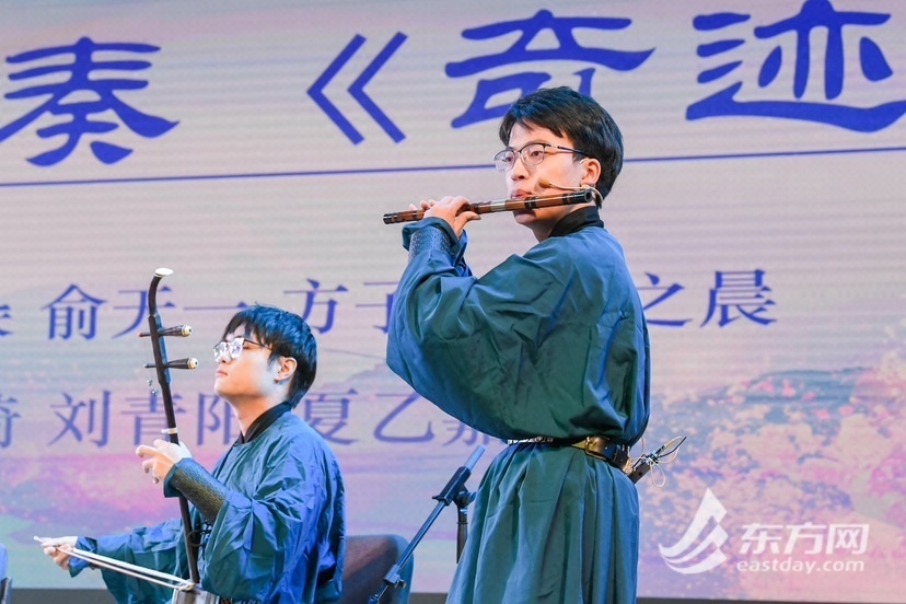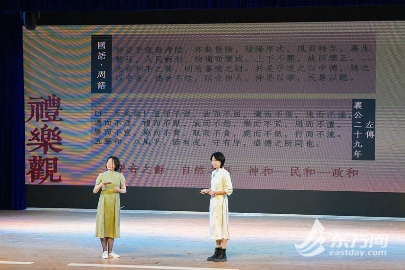 知名青年歌唱家、华东师大音乐学院石春轩子教授一曲《山之高》,古意盎然,中华传统文化之美在文学与艺术的互动中别开生面。中国少儿戏曲第26届“小梅花”奖得主、金山亭林小学学生吴林璘带来锡剧表演《梨花颂》,唱词宛转优美,古韵悠扬。昆曲《牡丹亭•游园•皂罗袍》以江南地区特有的剧种展现了别具一格的地方文化特色,江南文化的精髓融合于悠扬的曲风和精妙的表演之中。