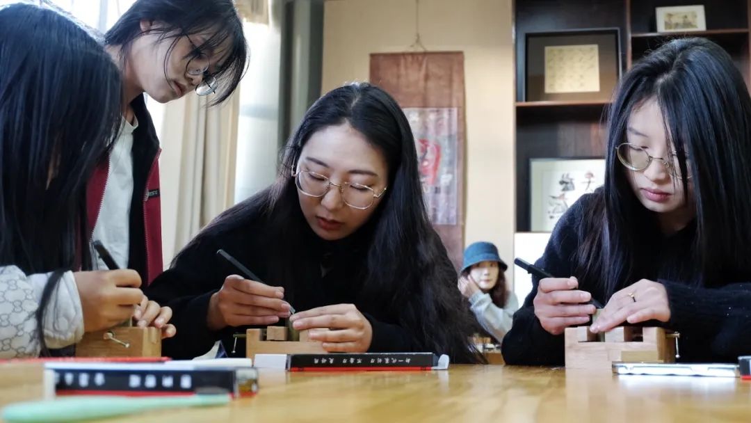 活动期间,华东师大美术学院书法篆刻专业研究生程羽瑄、吕明姝为丽江师专学生带去了“体悟丽江魅力,传承篆刻艺术”的篆刻体验活动,让现场同学动手完成属于自己的篆刻作品,感受传统技艺的奥妙和篆刻的乐趣,受到了大家的好评。华东师大美术学院还向丽江师专赠送了20套篆刻工具材料,供同学们练习使用。