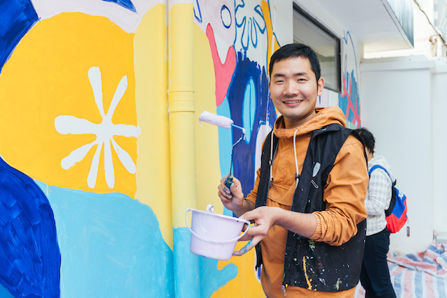 杨芳,一位自上海师范大学美术专业求学起,便致力于将艺术才华融入志愿服务的青年,如今与其他两位志同道合的伙伴共同创业,推出了一项名为“一起约‘绘’吧”的志愿公益服务项目。项目的核心理念在于共创。经过多年的实践,它的影响范围已经渗透到社区治理、城市更新、乡村振兴以及关爱困境青少年等多个层面。青年艺术家、高校美院的学生以及社区乡村的居民们,在公共空间如墙面、地面或城市家具上共同进行艺术创作,以让更多人接触、了解和享受艺术,从而实现艺术对公共环境、社区美育和邻里关系等多方面的赋能。