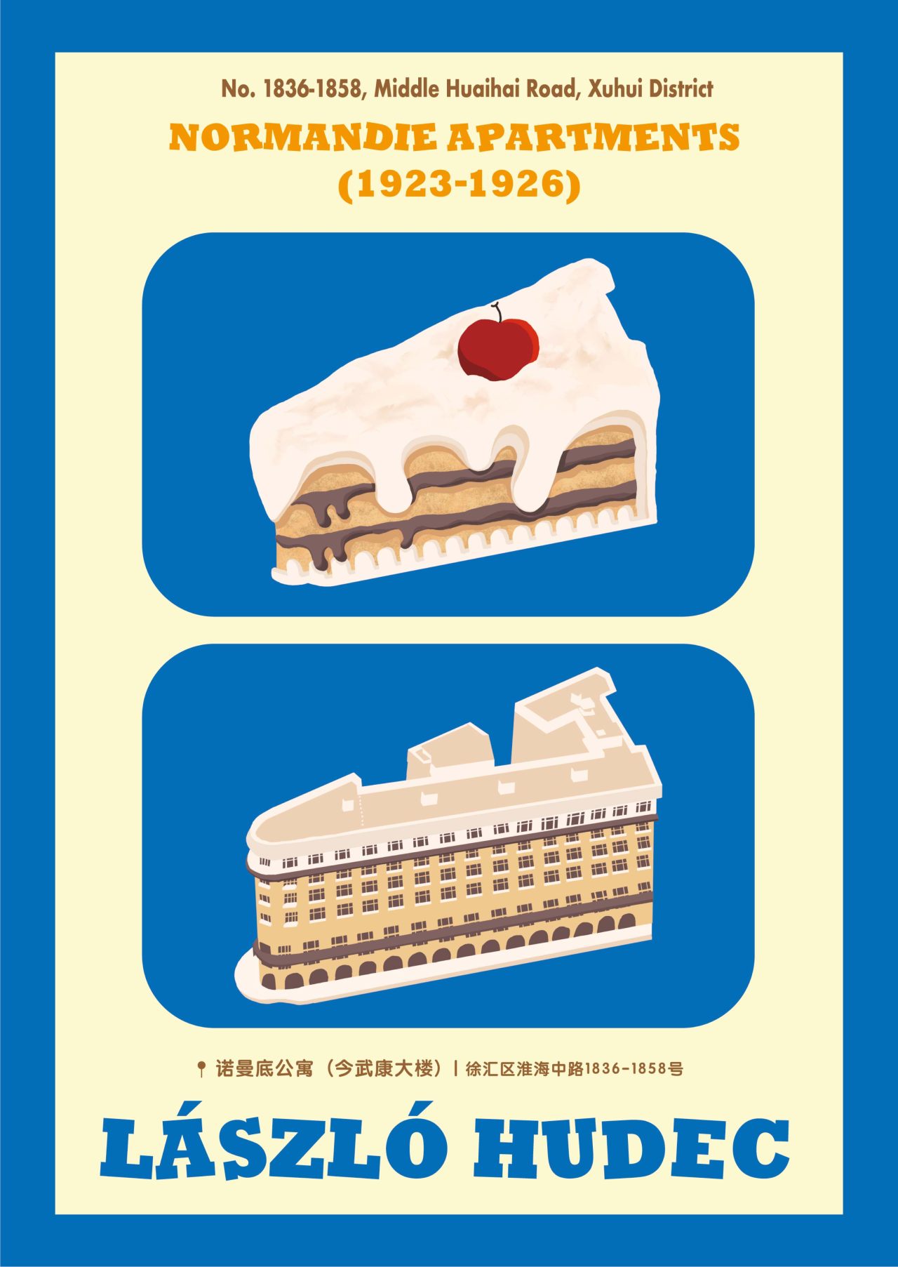 卞婧怡:这组作品是当时在我们的MFA项目实践课上创作的,当时恰逢邬达克诞辰纪念,课程主题就是为邬达克建筑进行文创设计。通常,我们见到的建筑类文创,要么比较强调建筑的历史信息,要么就是将建筑进行艺术化处理,但仍保留建筑的基本形态。所以当我在设计的时候,我就在想有没有什么更创新、更吸引人的方式呢?在查阅资料的时候,我突然发现一些邬达克建筑的形态和食物的形态似乎可以联系在一起,于是以此为思路,从里面寻找共同点。