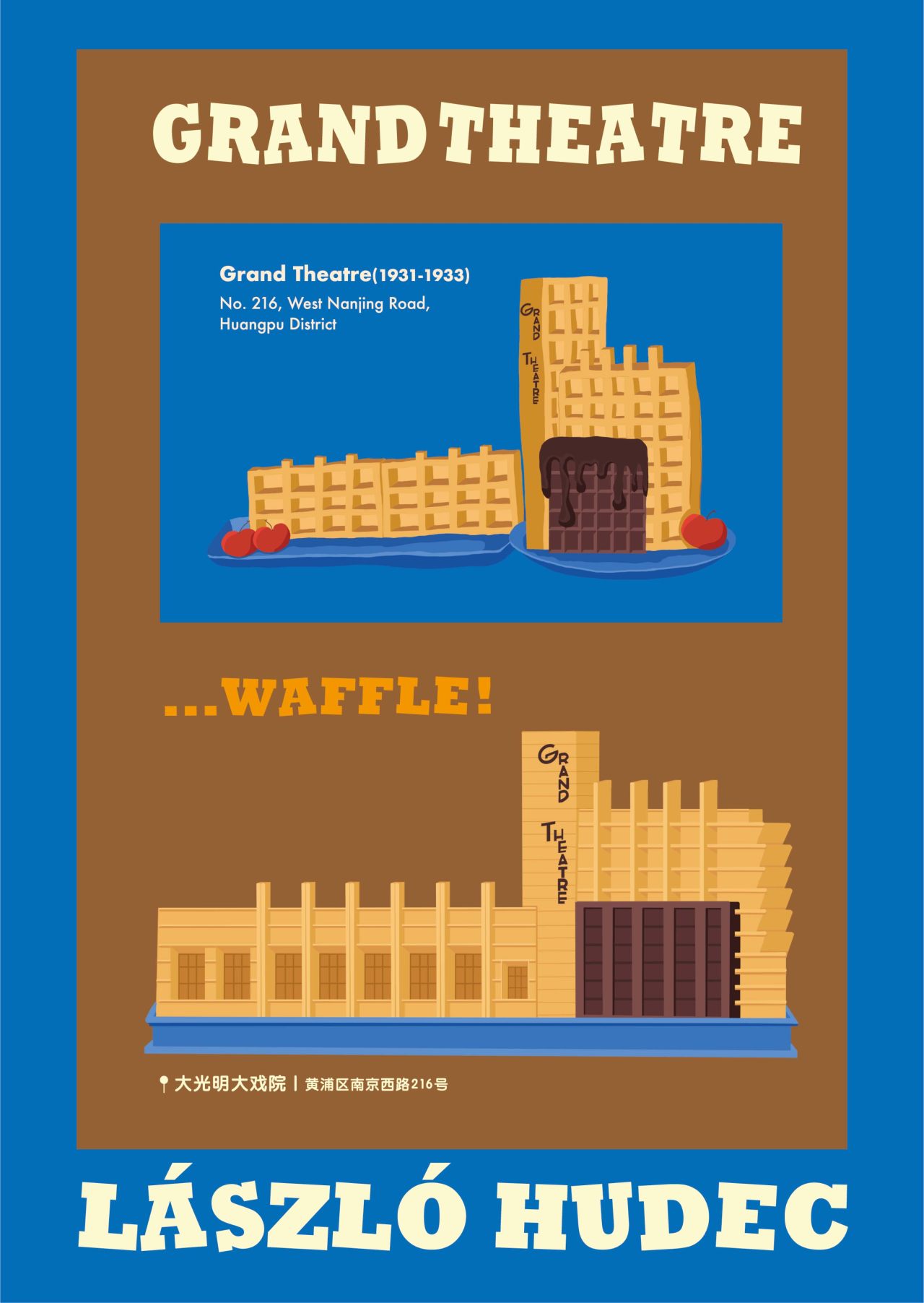 武康大楼奶油蛋糕、大光明戏院华夫饼、国际饭店巧克力雪糕,还有威化饼干版的沐恩堂等等,建筑和美食之间竟然有那么多相似之处,看起来是那么秀色可餐,不禁让人怀疑,当年的邬达克不仅是个建筑大师,其实还是一个深藏不露的“吃货”?