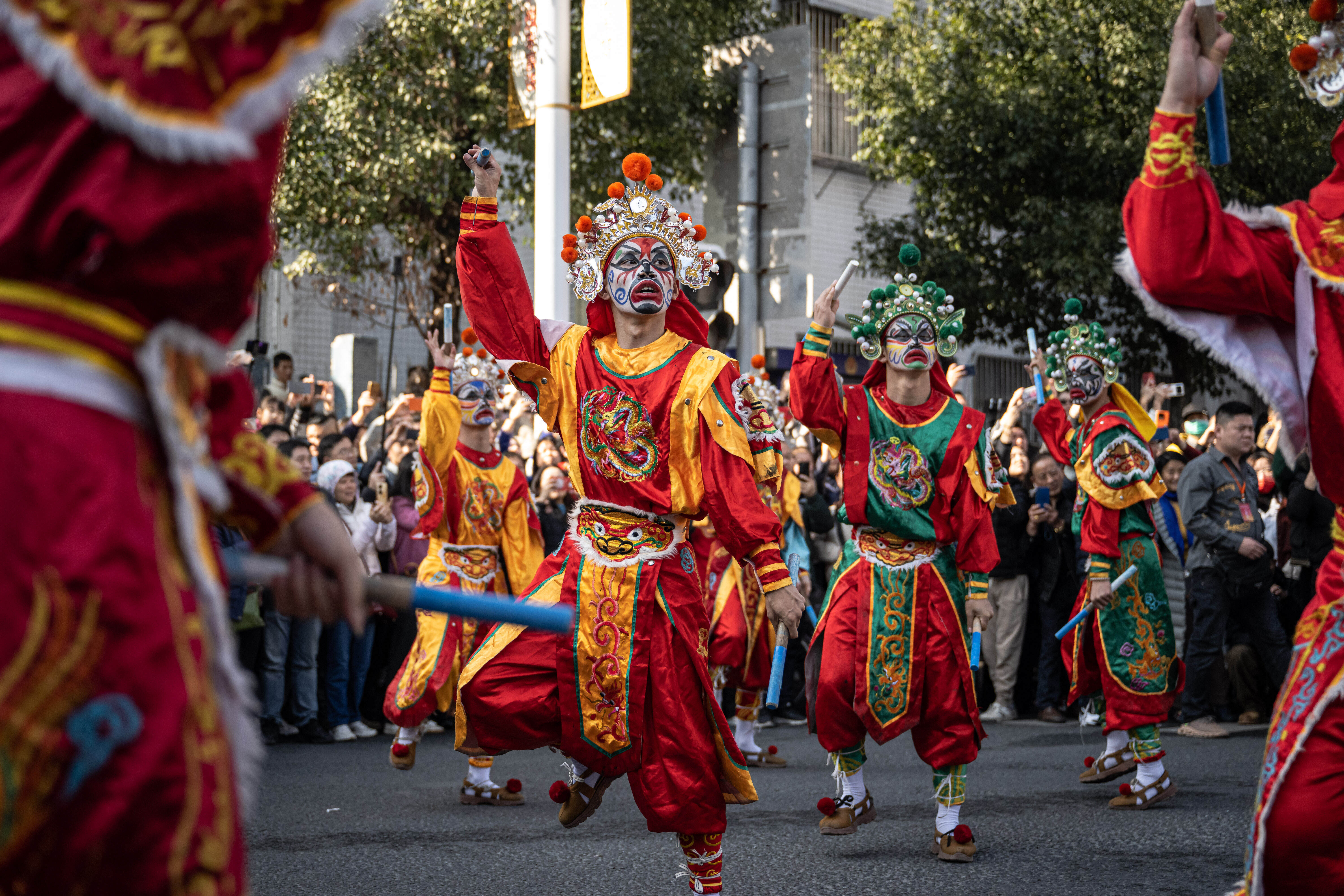 2024年2月17日,大年初八,广东揭阳普宁街头上演英歌舞。图片来源:东方IC