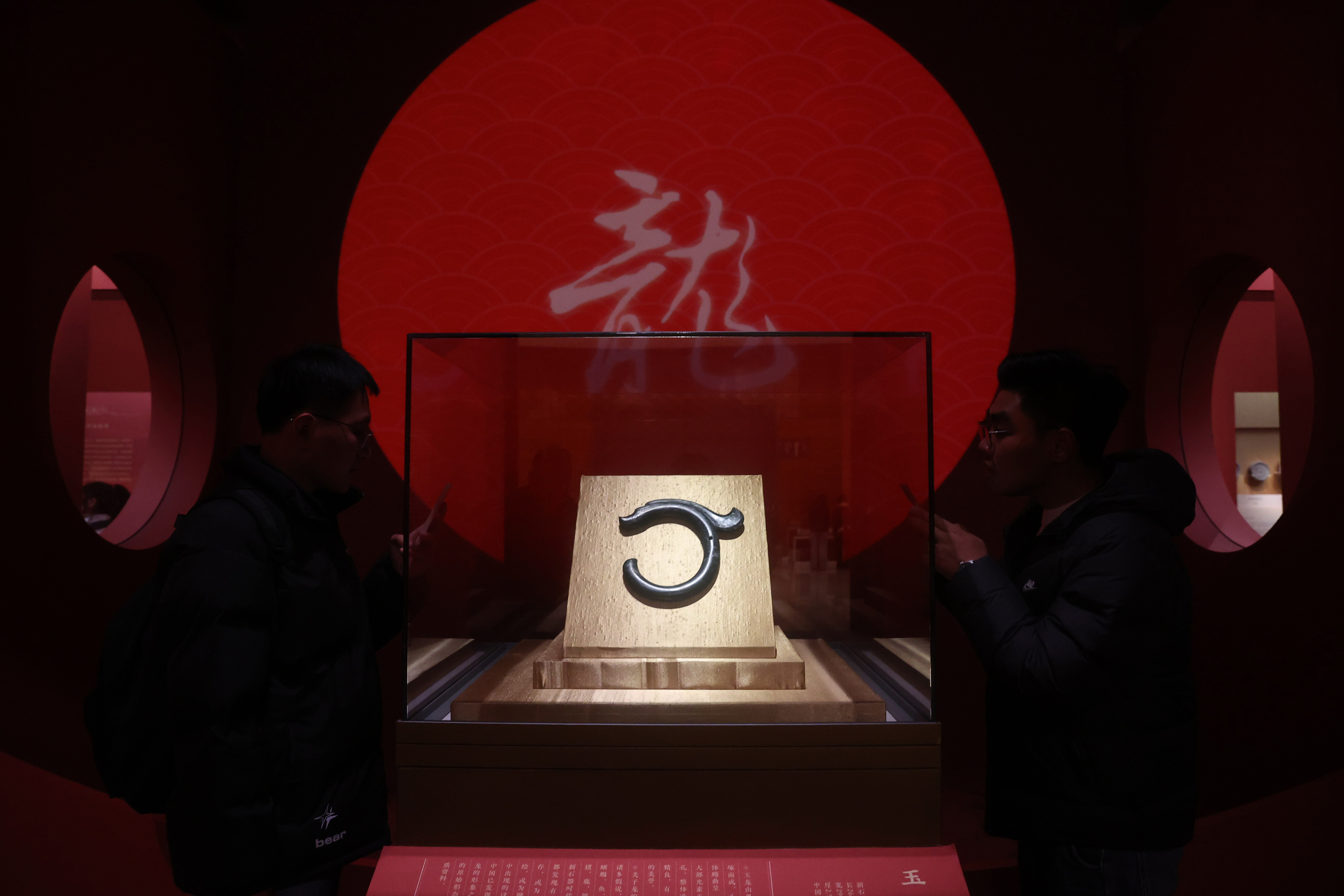 2024年2月7日,北京,观众在中国国家博物馆“龙肇新元——甲辰龙年新春文化展”上观看红山文化玉龙。图片来源:东方IC