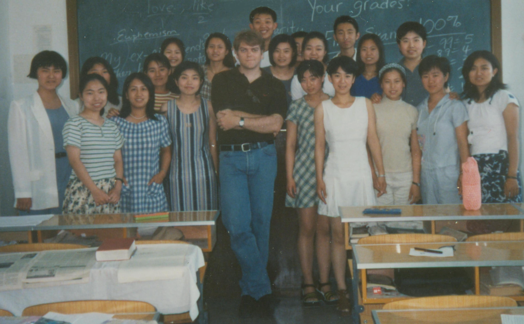 ·1998年,马奥尼在辽宁大学与学生合影。