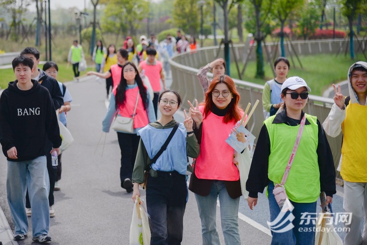 记者了解到,在世界地球日前夕,50余名青年学子拿起捡拾夹,从校园的樱桃河岸到兰香湖畔,以捡拾徒步的方式,积极响应低碳环保生活方式。沿途,来自“小青杉”生态文明实践青年团队的成员们结合浦江第一湾建设、海绵城市、绿色生产、人与自然和谐共生等开展主题科普,在“行走的大课堂”中学习实践。