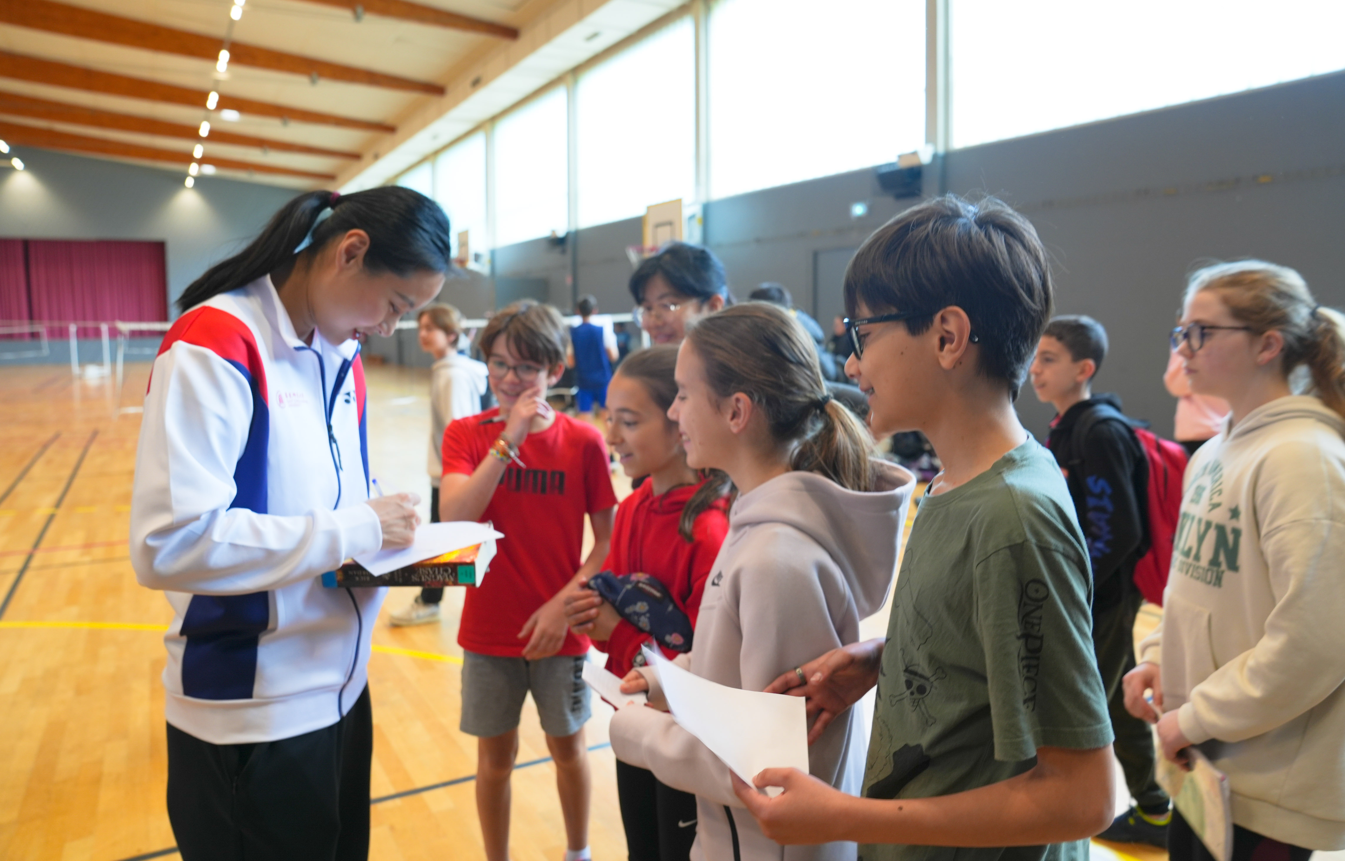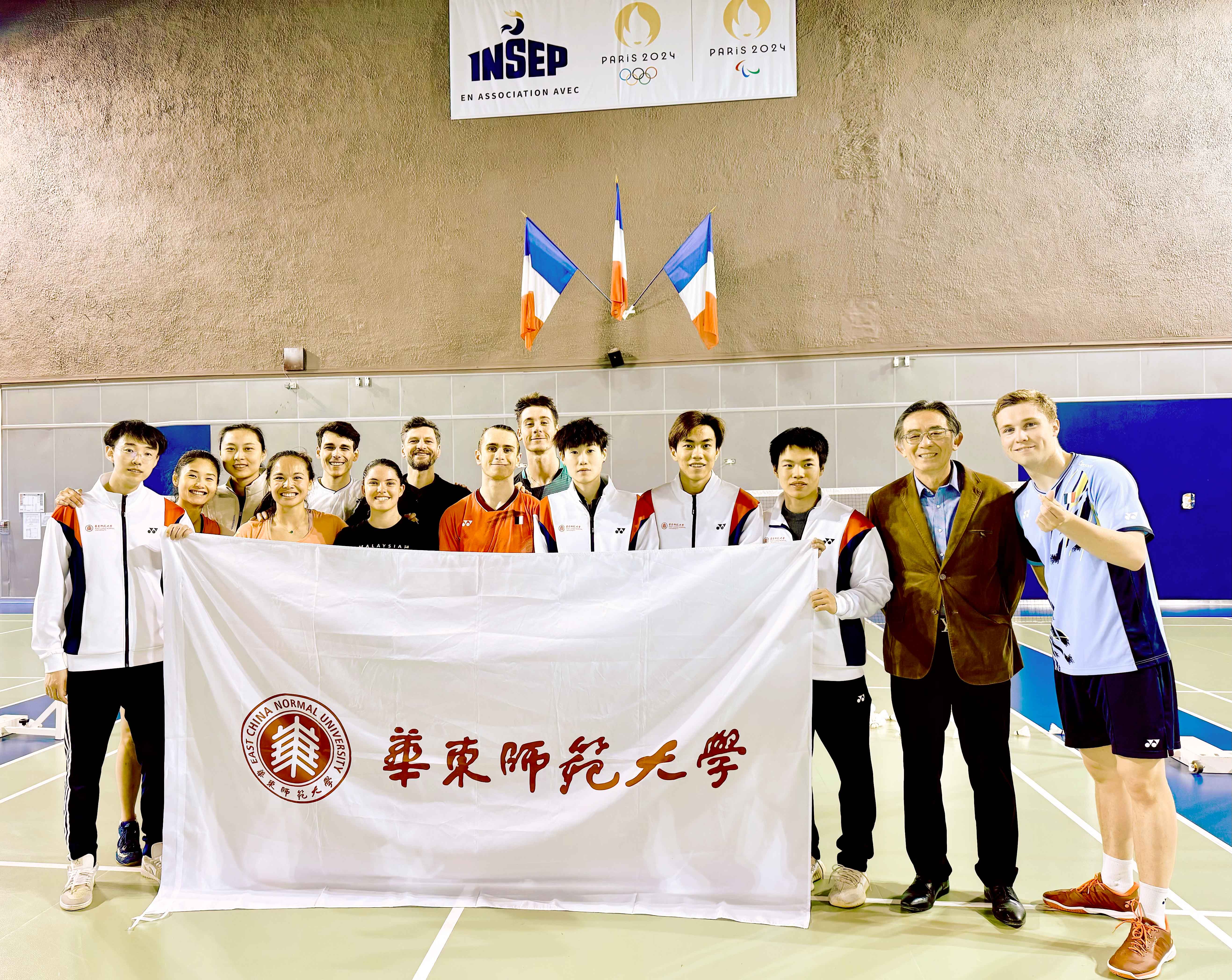 这是华东师大体育与健康学院院长季浏教授带队的羽毛球世界冠军团队“与世界冠军面对面——中法高校羽毛球友谊赛”活动的第七场,此前。他们在巴黎、里昂等地与法国国家体育中心(INSEP),巴黎-西岱大学以及里昂部分大中小学开展了相关活动。