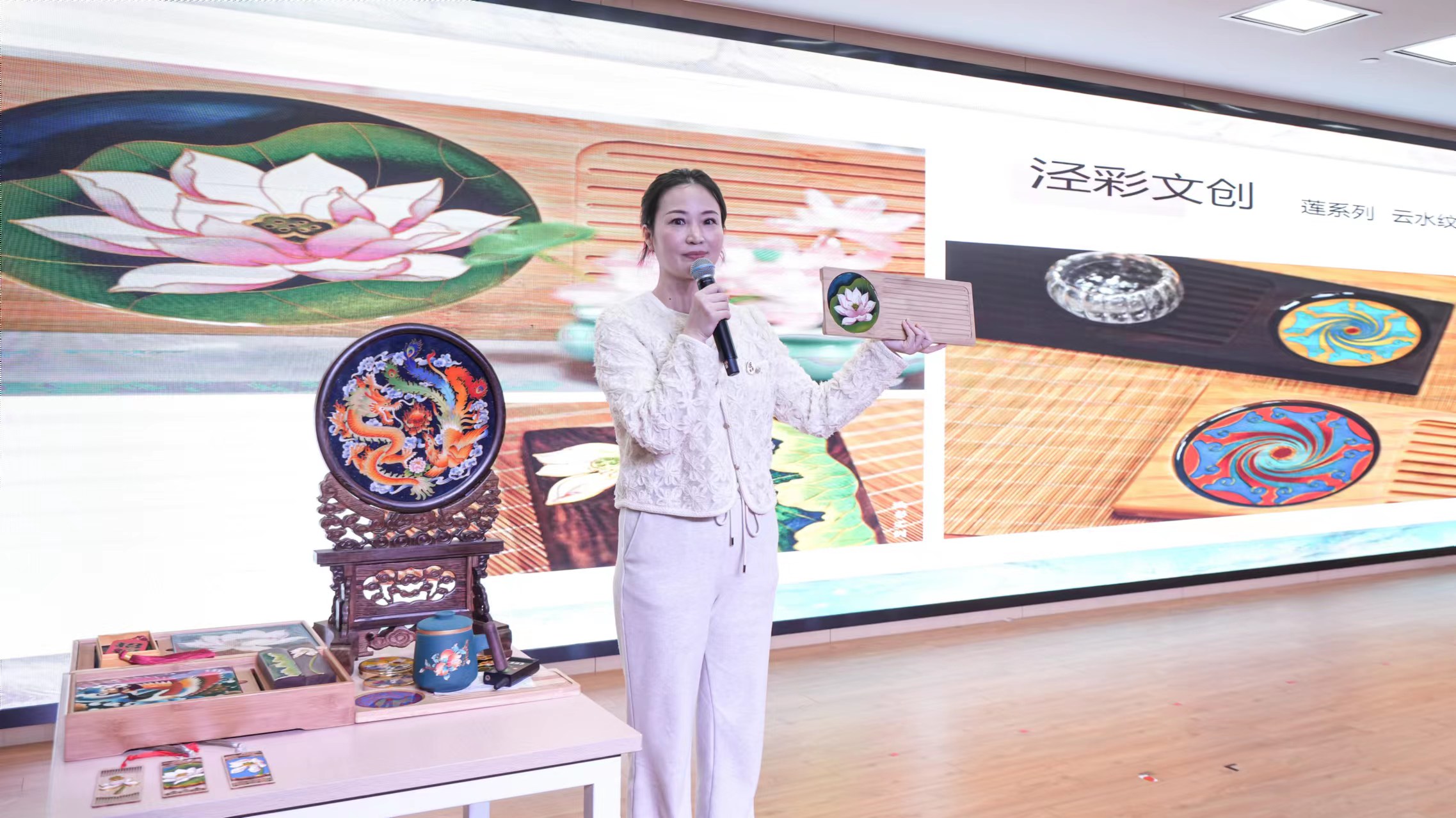 曾在上海市民文化节“指生万物”长三角市民手作大赛中获评“最美手作人”的吴泾青年艺术家董慧,现场为大家讲述了她与掐丝珐琅传统技艺结缘、将古老工艺带回家乡发扬光大的历程,用课程精彩展示掐丝珐琅画的制作技艺,让人们重新认识这门工艺的技艺之美和匠心之美,为古老工艺赋予莲花南路莲花、尚义桥石板图案等更多吴泾元素,用作品唤醒人们对吴泾文化的共鸣,推动掐丝珐琅工艺在吴泾传承发扬。