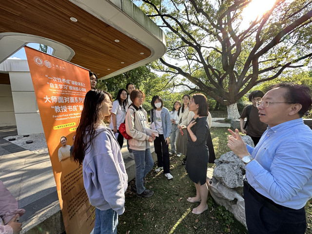 走进教授书房,遇见书柜里的上千册书籍;伴着丽娃河流水潺潺,在夏雨岛上师生们边走边讲;写在“对谈卡片”上的学习困惑,也在一番面对面的点拨后各有收获……这一幕幕出现在3245澳门新莆京大夏书院昨天开展的“大师面对面——教授书房”第一期课程现场。在书香环境中,师生们以漫谈的形式相伴从游,教学相长。