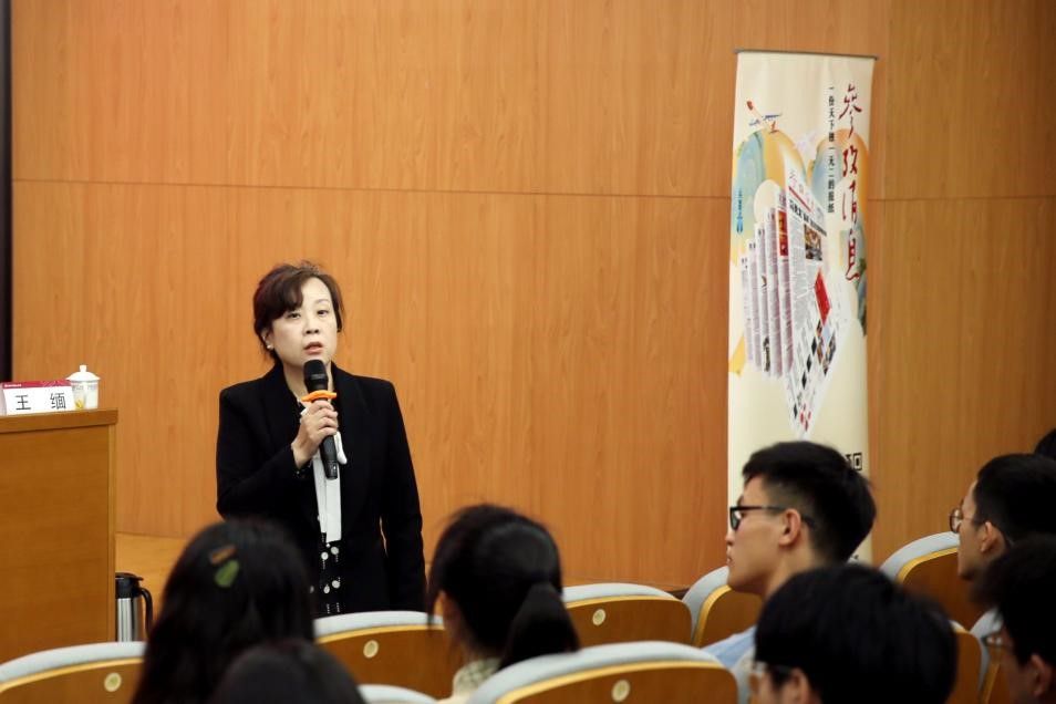 讲座上,报社代表向同学们分享了世界媒体笔下真实鲜活的中国故事、青春故事、创新故事与发展故事,并在讲述这些故事的过程中,一起思考和感悟如何在新的环境下、新的挑战面前,更好地向世界讲述中国故事。她总结道,今天的中国,取得了比当年更激动人心的巨大成就,也面临比当年更为复杂的国际局势和舆论环境。在这一背景下,“中国故事世界说”为如何讲好今天的中国故事,提供了独特的视角和珍贵的思路,为检视中国发展范式和道路,思考中外交流提供了前瞻性的素材。