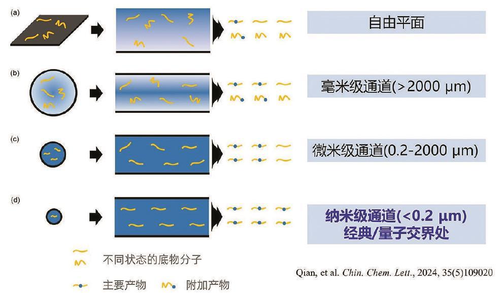 分子的传递和反应行为在自由空间和微纳空间有着巨大差异。 (图片来源:《中国化学快报》)