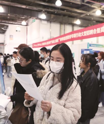 一名大学生在2024年“乐业上海优+”春季促进就业专项行动大型招聘会上。 李茂君 摄