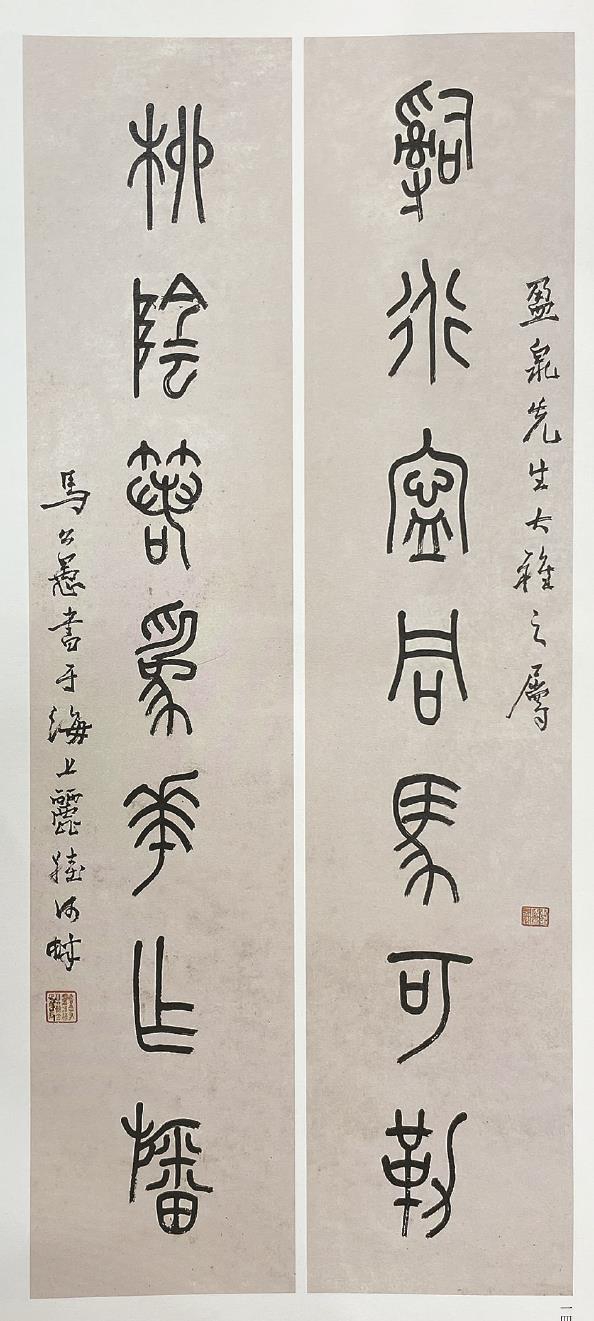 马公愚先生在丽娃河畔书写的篆书对联